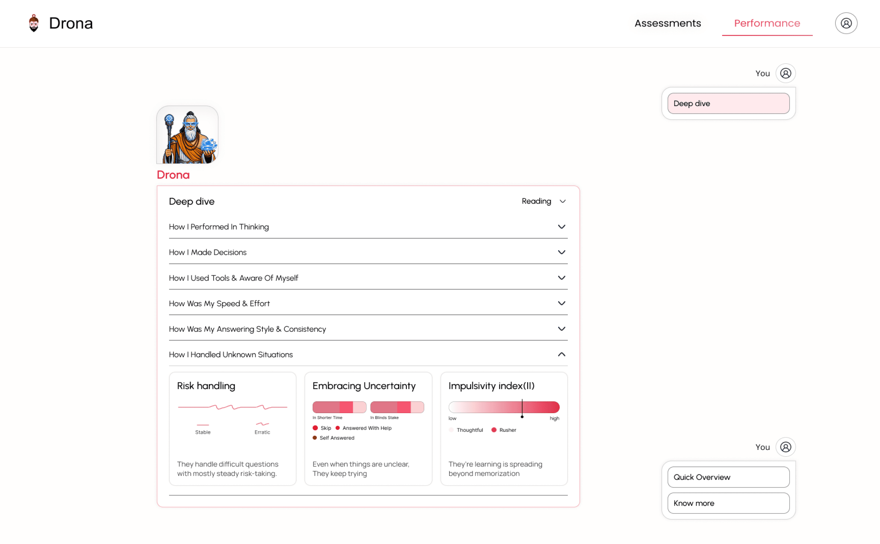 Instead of marks, students see how they think, where they hesitate, and how they solve.