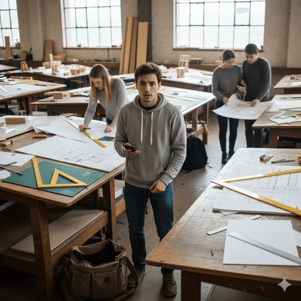 Architecture students frequently realize they need materials at the moment of work inside studios, classrooms or before the class. Traditional options (shops, borrowing, advance buying) introduce delay, stress, and wrong purchases under pressure.