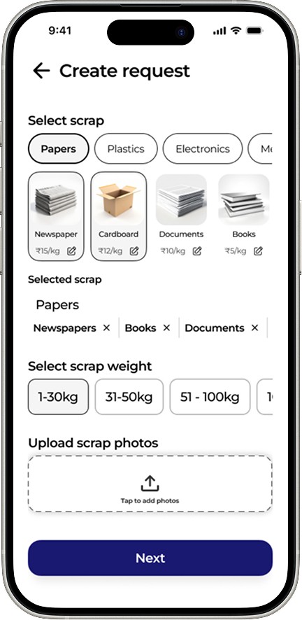 Drive the scrap collection app UX UI Design which streamlines scrap selling and buying from concept to launch
